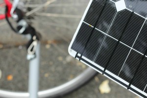 We left the house a bit earlier than usual today to support NYC's Bike to Work Day in our own solar-powered way. We decked out our usual commuter bicycle with 60+ Watts of portable solar panels, 180 Watt hours...