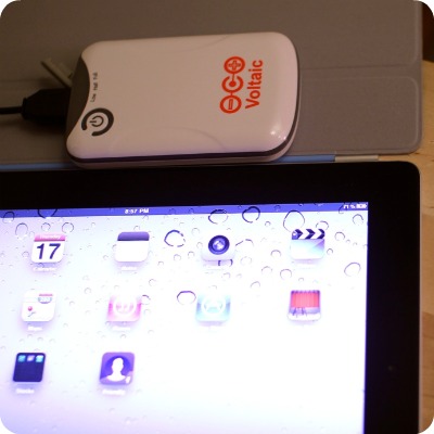 While we wait impatiently for our iPad2 to arrive in the mail, we have had to rely on friends iPads for testing purposes. We tested both our current V11 USB battery and the larger battery included with our upcoming Spark tablet case which is designed as a dedicated iPad solar charger.