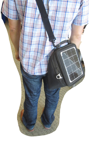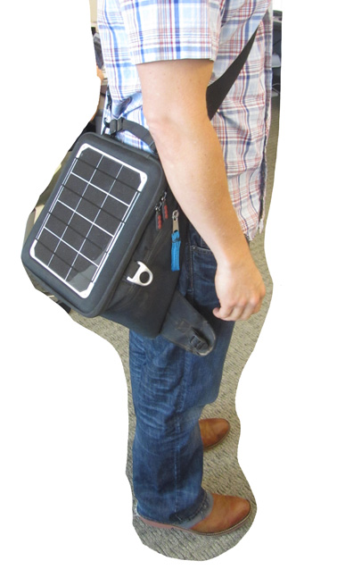 Off the bike, the wider base of the bag helps to orient the panels toward the sun.