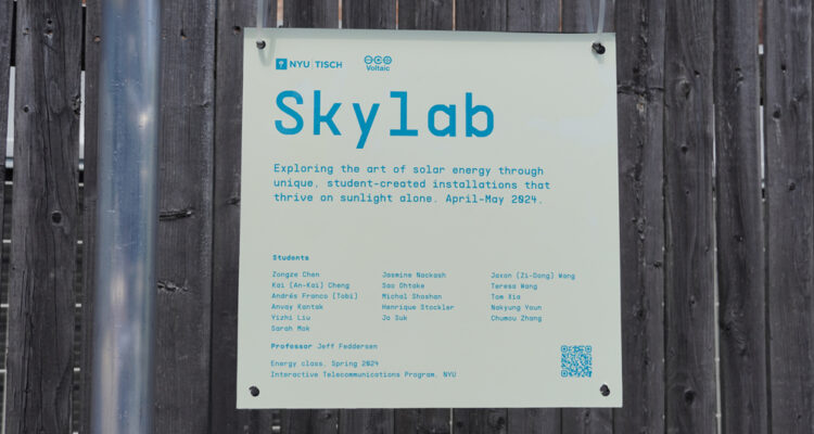However, this year was different. With the approval of NewLab, which is located in the Brooklyn Navy Yard and is home to the Voltaic Systems office, we were able to offer small solar panels and Always On battery packs, as well as, but more significantly, project space for the Energy 2024 class. While some might balk at exhibition space next to a garbage skip in a parking lot, outside project space is in short supply. What Voltaic Systems and NewLab offered the ITP students was space for students to install, test, and iterate on their ideas over time.