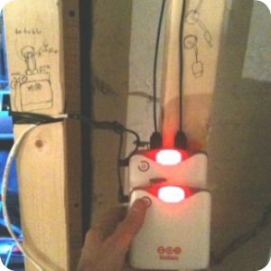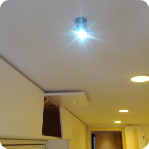 Lighting: The walls were open so we had the opportunity to run the wire to our Touchlight to the ceiling over the bed. We hadn’t really contemplated this sort of installation in the design, but it was not too difficult to pull together some parts from the lighting store to make a mount for the plug. We tied a knot in the end of the wire, fed it through a threaded rod, and held it in place with silicone inside the rod. Then we screwed the rod into a bracket also from the lighting store. There are many ways this could have been done, including a simple hole through the ceiling with the wire coming through. In this case we wanted the threaded rod so we have the option of removing the light and wire (the moveable wall in the apartment is very close to the ceiling), and of mounting a more complicated hanging light fitting. To test, we made the connection with one of our adapters (3.5×1.1mm to 3.5×1.1mm)