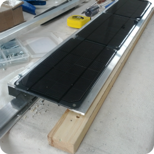 After attaching the panels to the first strip we repeated the process for the other side to get two strips holding all four panels in place.