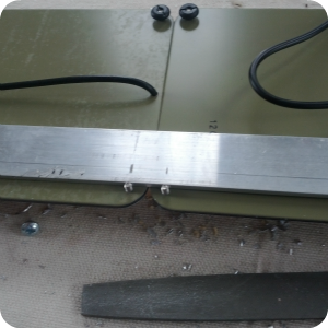 Given that our panels come with threaded bolts for mounting, we used two long strips of 1” wide 1/4″ aluminum as the foundation. We lined up the panels and marked off the locations for holes on the first strip, then drilled ½” holes (big enough for the nylon nuts to sit inside).