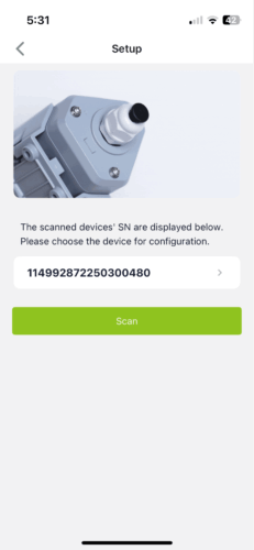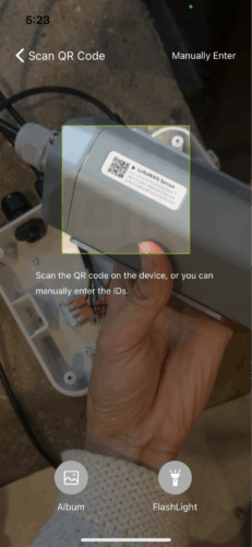 Once logged into the SenseCraft app, press the green “+” button in the upper right corner and scan the QR code on the side of the data logger to add the logger to your account.