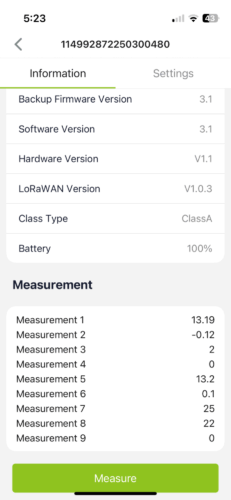 If you press “Continue” after this dialog and return to the Information tab, you can press the “Measure” button to see a live readout of your measurements. Check that these measurements are within your expected bounds.