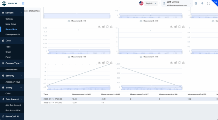 When complete, you will be able to view all the metrics of your CORE Solar System via the SenseCAP CC portal, as shown below.